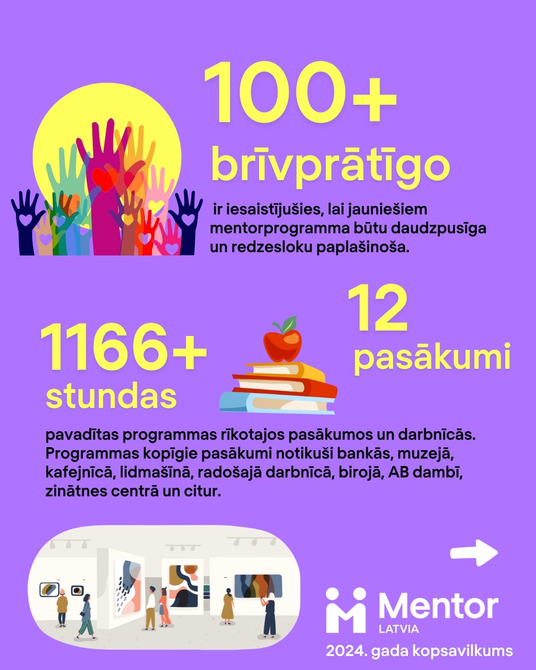 - 100+ brīvprātīgo ir iesaistījušies, lai jauniešiem mentorprogramma būtu daudzpusīga un redzesloku paplašinoša.